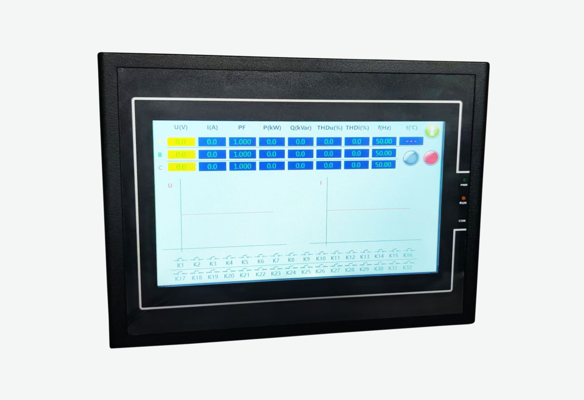 觸摸屏無功補償控制器以高速數(shù)字信號處理器為核心,采用交流取樣,人機界面為7寸點陣大屏幕液晶觸摸顯示器,其具有配電監(jiān)測、無功補償、諧波分析。具備多種保護功能,報警輸出功能;可檢測柜內(nèi)溫度,并啟動散熱風(fēng)機(定制);并可監(jiān)測開關(guān)狀態(tài)。